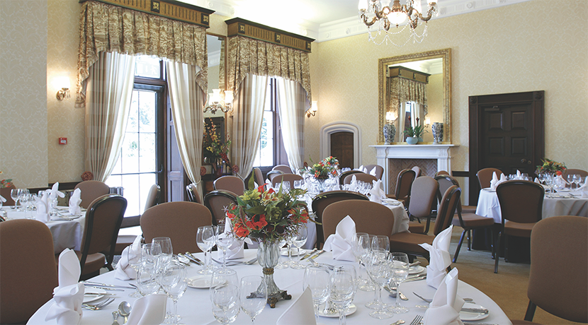 Located at Netley Hall, in the heart of the Shropshire countryside, The Clock Tower takes inspiration from the Roaring ’20s, boasting lavishly decorated interiors that include unique Waterford crystal chandeliers, exquisite tapestries and a stunning stained-glass ceiling.