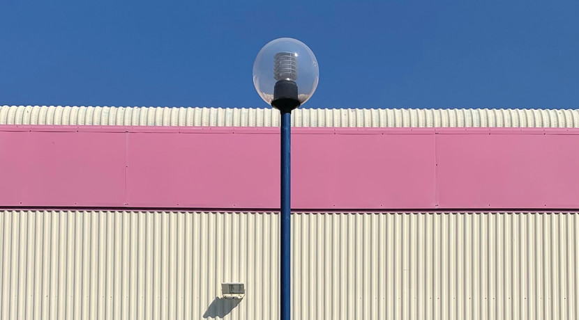 The photograph in question - called Lollipop - features a lamppost topped with a glass globe, presented against a building whose cream and bright-pink cladding contrasts with a strikingly blue sky.